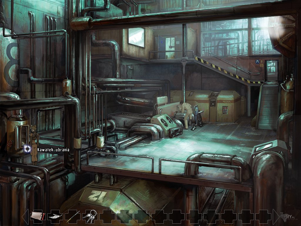 Udajemy się w lewy dolny róg pomieszczenia i spoglądamy na pompę filtrującą - okazuje się, że filtr jest zablokowany przez kawałek ubrania. Przekręcamy zawór, otwieramy pompę i wyjmujemy kawałek ubrania. Ma on wyszyte inicjały MS. Spoglądając na niego możemy zobaczyć, iż to rękaw - sabotażysta wspominał coś wcześniej na temat wypadku, w którym prawie stracił rękę. Idziemy do biura w tym samym pomieszczeniu i rozmawiamy z kierownikiem.