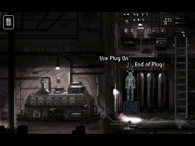 Schodzimy i idziemy w prawo. Wchodzimy na skrzynię i rurką uderzamy w drabinę, dzięki czemu zjeżdża ona na dół. Wchodzimy na górę i umieszczamy przedłużacz w miejscu pod czerwonym światłem, następnie ponownie klikamy na kabel i na otwór po lewej stronie. Schodzimy na dół, przesuwamy skrzynie w lewo i znów na nią wchodzimy. Chwytamy kabel leżący na dole i łączymy go z tym zwisającym z góry.