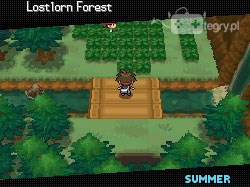 Omijamy drzewo, a w podejrzanie wyglądającym krzaczku odkrywamy trenera w czerwonym kapeluszu - pokonujemy go, a w nagrodę otrzymujemy Pecha Berry. Od niego idziemy na północ i w lewo. Stajemy przy nieco odstającym drzewku (na dole, przy jego lewej krawędzi) i dajemy dwa kroki w lewo i jeden w górę. Podnosimy Leaf Stone (musimy patrzeć się w lewo).