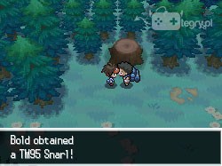 Idziemy na północ, by zauważyć pana z plecakiem, który wpatruje się w pień drzewa. Odpowiadamy twierdząco na jego pytanie (pyta się, czy my też widzieliśmy tutaj Pokemona o nazwie Zoroark). W końcu otrzymujemy od niego TM95 Snarl. Ten Pokemon rzeczywiście tu był - pojawił się, gdy mężczyzna odchodził! Mniejsza z tym, idziemy w prawo.