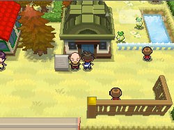 Od razu po wejściu na uliczkę, idziemy w prawo (w trawy) i pokonujemy trenerkę (jak na dziecko, niezłe Pokemony!). Będzie to walka rotacyjna. Tuż po niej łapiemy leżący nieopodal Quick Ball i wchodzimy na most. Będąc na nim, wchodzimy do wody i płyniemy na północny-zachód. Tam pokonujemy rybaka, który posiada sześć Magikarpiów. Po bardzo ciężkiej walce udajemy się w lewo. Na "łysym" polu odnajdujemy Ultra Ball. Wchodzimy po schodkach powyżej i znajdujemy również Full Restore oraz Calcium - oba te przedmioty leżą na ziemi. Wracamy do trenera, a następnie powracamy na most.