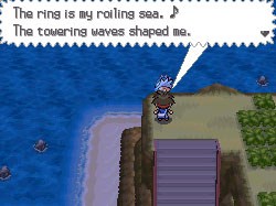Wychodzimy z domku, idziemy na południe i przechodzimy przez most. Natrafiamy na możliwy do przesunięcia głaz - pchamy go w dół. Przechodzimy po nim i walczymy z chodzącym tutaj karateką. Łapiemy następnie Zinc. Na polu dokładnie w prawym dolnym rogu tego miejsca znajdziemy Rare Candy. Na pewno się przyda. Wracamy w górę po moście i schodzimy po schodach po lewej stronie. Na plaży idziemy cały czas w dół, by w spiczastym kamieniu na końcu znaleźć Pearl String. Idziemy teraz lekko na północ.