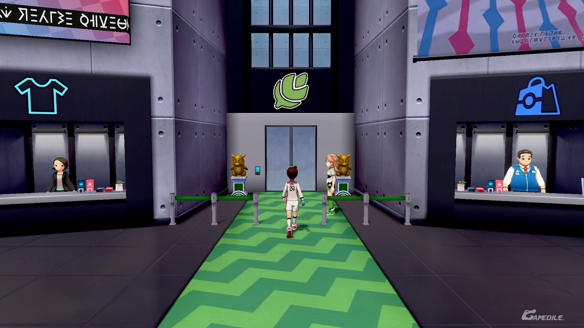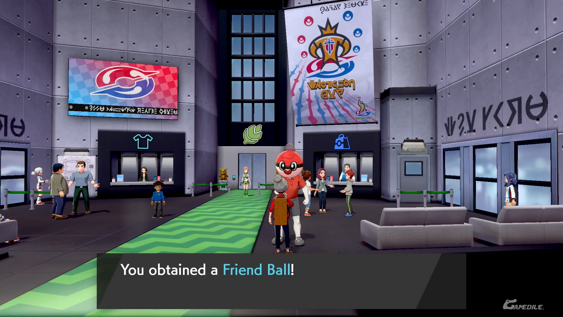 Jeszcze przed wejściem do Sali Gimnastycznej rozmawiamy z Hopem - okazuje się, że już uporał się z tutejszym liderem. Wchodzimy do środka i gadamy z Ball Guy'em - dostaniemy od niego Friend Ball. Młody chłopiec na środku wymieni swojego Meowtha (zwykłego) na naszego Galariańskiego. Warto to zrobić - jeśli nie mamy takowego, możemy go złapać na Route 4. W chwili obecnej to wszystko - rozmawiamy z panią na środku, przebieramy się i rozpoczynamy misję.