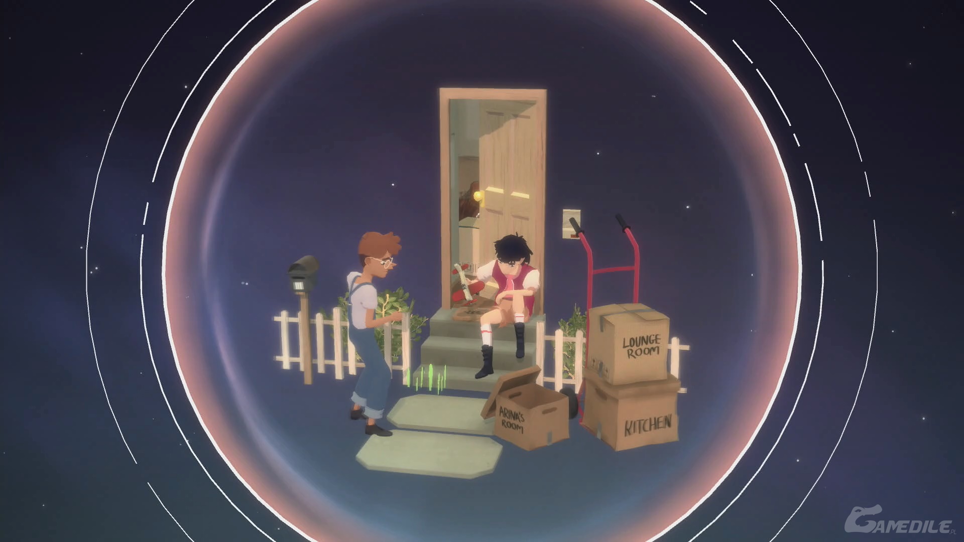 Na ekranie kończącym rozdział ruszamy ekranem, aż podświetlimy drzwi. Trzymamy podświetlenie przez chwilę, by zdobyć osiągnięcie Moving in.