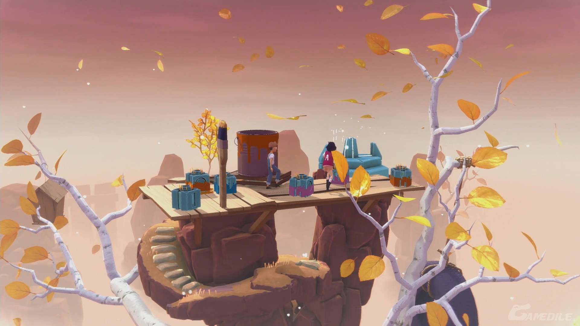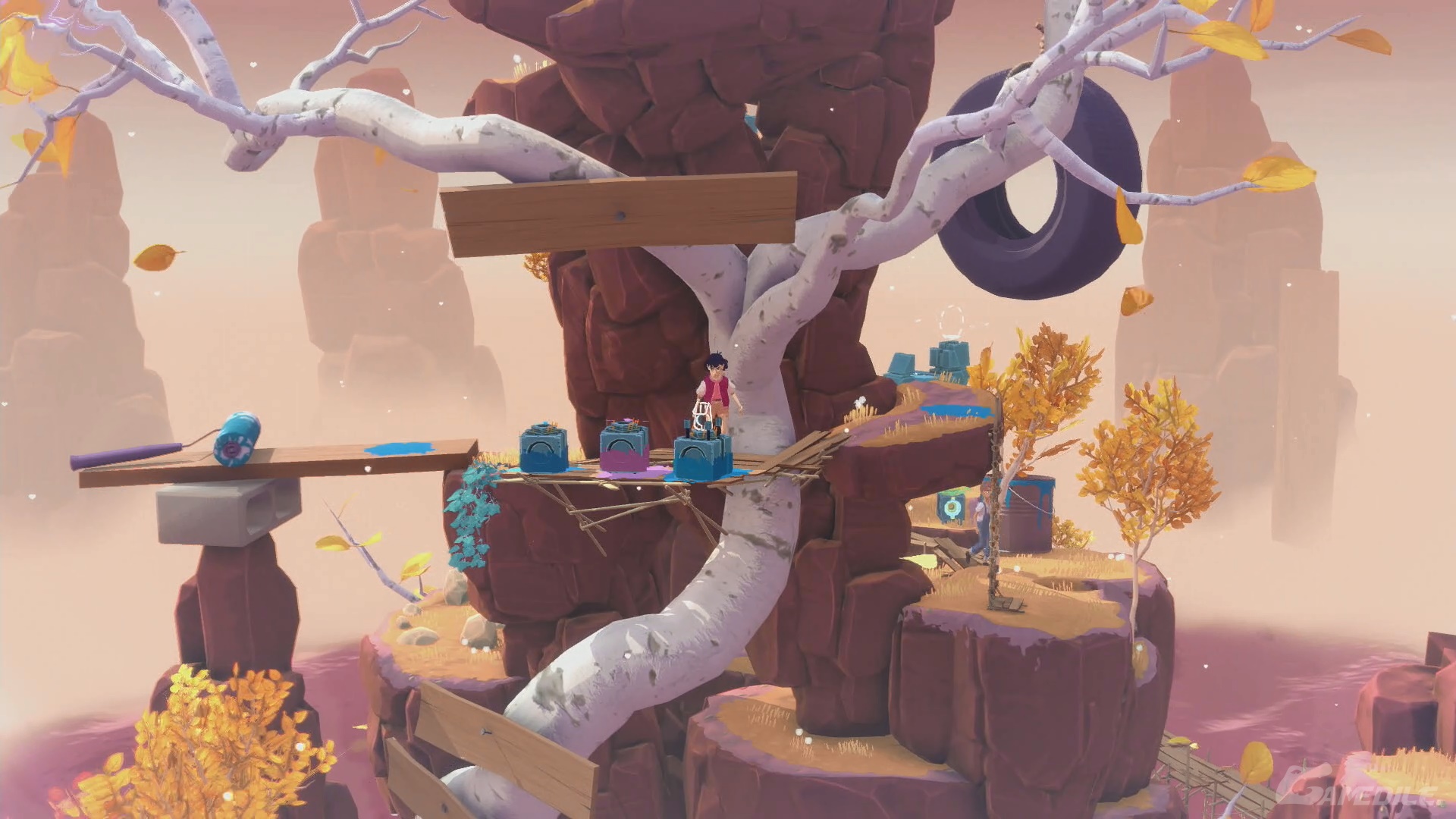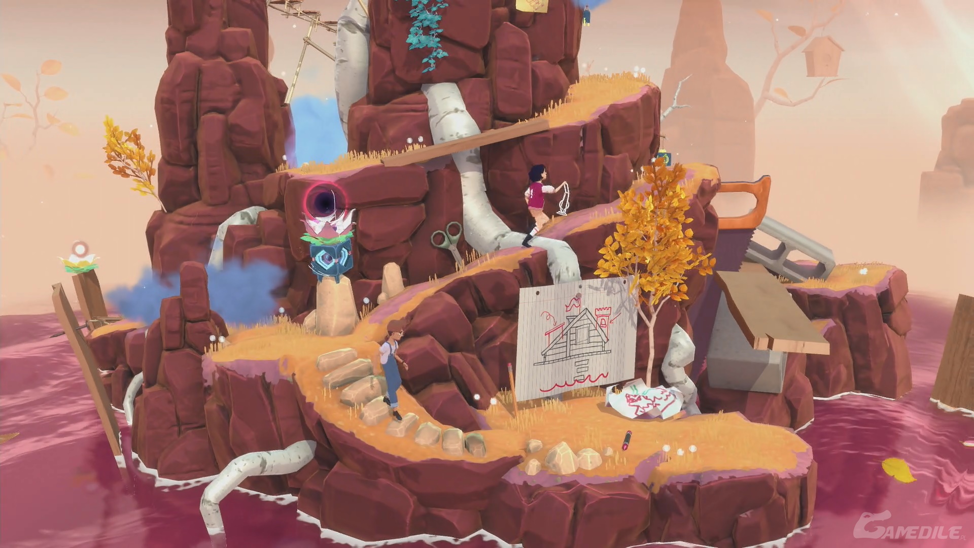 Idziemy w prawo, używamy dzwonu i, po rozdzieleniu się bohaterów, umieszczamy latarnię w trzecim pudle od lewej. Cofamy czas, by ta zabrała światło, a następnie przyspieszamy go, by przyniosła go Arinie. Zabieramy je i idziemy w prawo - tworzymy most. Nasz bohater do nas dołączy. Udajemy się na sam szczyt, obserwując lot wszystkich pudełek.