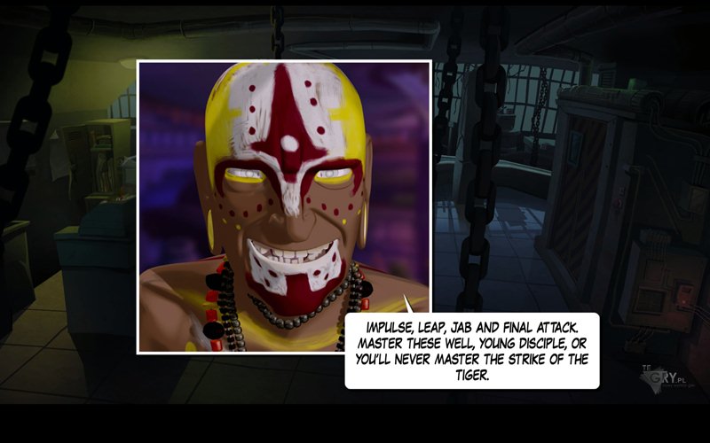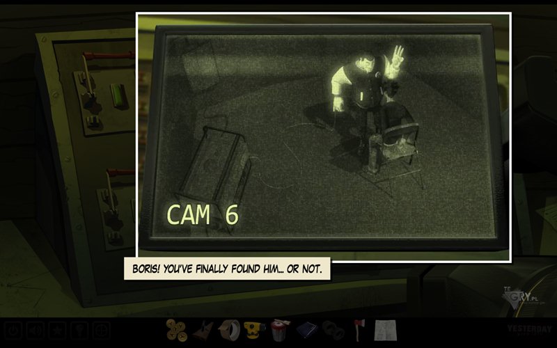 Teraz używamy kamery (camera) na podłączonym kablu - zauważamy, że kamera numer 1 śnieży. Korzystamy z dużego czerwonego przycisku pod monitorem, aby przełączać się między kamerami. Zauważamy, że szósta kamera pokazuje Coopera oraz Borisa! Przyglądamy się temu z bliska - wiemy, że znajdują się w pokoju z jakimś generatorem. Tylko gdzie znajdziemy ten pokój? Używamy planów (plan) na przełączniku oznaczonym literą A, by nasz bohater zaczął sprawdzanie kolejnych pomieszczeń, w końcu znajdująć literę odpowiedzialną za pokój z generatorem. To litera F - używamy przełącznika przy tej literze, wyłączając światło w pokoju z generatorem. Zauważamy, jak Cooper wychodzi z "pieca". Pojawia się wspomnienie mistrza, który tłumaczy bohaterowi jeszcze raz sztukę walki. John unieszkodliwia Coopera korzystając z owych nauk.