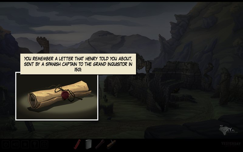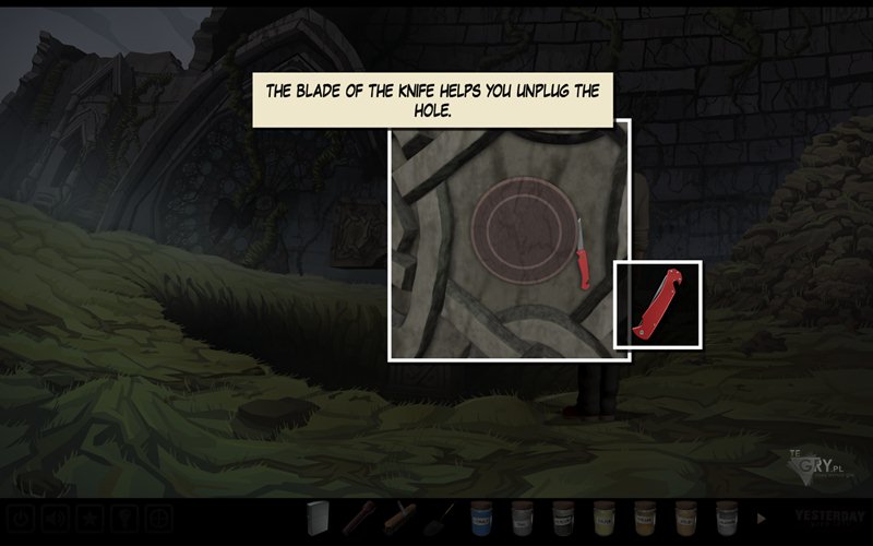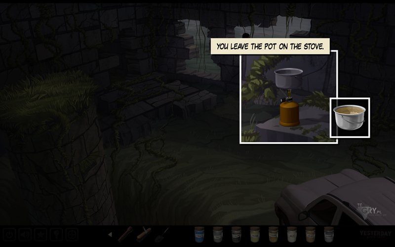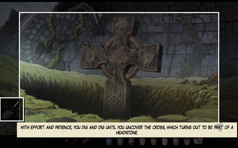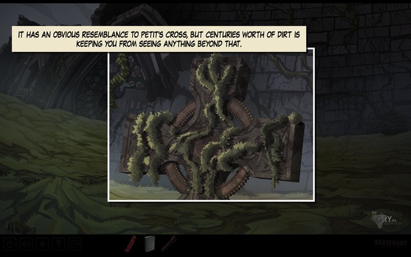 Używamy szczotki (scrub brush) na garnku do gotowania (cooking pot), nasączając ją substancją. Następnie używamy jej na samym zabrudzonym krzyżu, tym samym go oczyszczając. Teraz korzystamy z łopaty (shovel), by wykopać specjalną monetę (coin) i odkryć cały krzyż. Moneta wywołuje u nas retrospekcję. Zauważamy, że krzyż jest podobny go tego, którego ukrył ojciec Pauline w swoim pamiętniku.