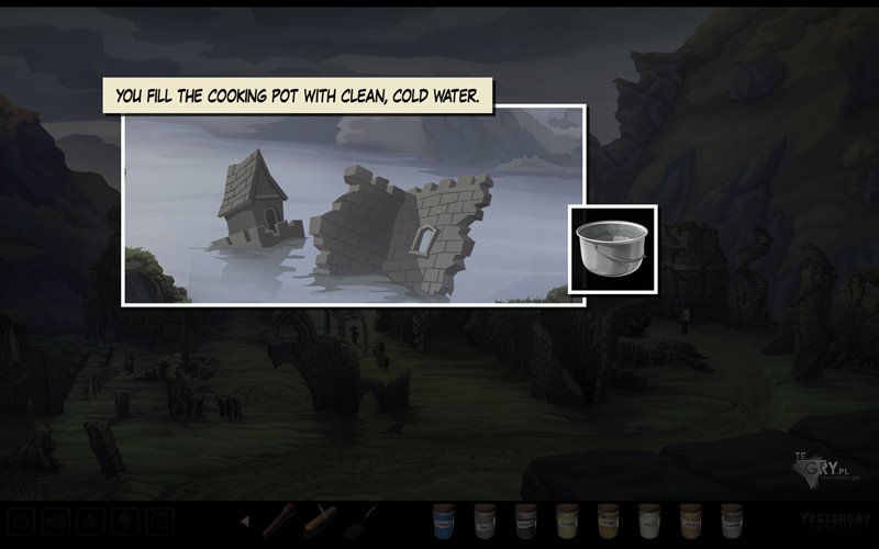 Teraz idziemy do samochodu po prawej stronie. Tam znajdujemy łopatę (shovel), garnek do gotowania (cooking pot) i wszystkie małe buteleczki, zawierające kolejno kobalt (cobalt), cynk (zinc), rtęć (mercury), siarkę (sulfur), ocet (vinegar), sól (salt), złoty proszek (gold dust) oraz alkohol (alcohol). Rozmawiamy z Pauline. Wracamy na główną mapę kościoła. Używamy garnku do gotowania (cooking pot) na okolicznym jeziorze, napełniając go czystą, ale jednocześnie bardzo zimną wodą.