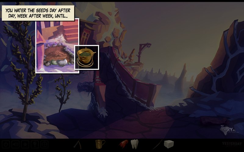 Naszego koszyka (bucket) używamy na głowie smoka, z której zwisają sople lodu (znajduje się ona na dole mostu, z lewej strony). Wracamy na balkon i używamy naszego koszyka na stojącym na środku kadzidle, tym samym pozyskując wodę. Znowu wychodzimy na zewnątrz. Z lewej strony zauważamy martwy krzak - znajduje się on w idealnym miejscu. Ucinamy go kataną, a w stworzony dół wsadzamy nasiona kwiatu prawdy (truth flower seeds). Następnie używamy na nim koszyka z wodą (bucket with water), tym sposobem pozyskując kwiat prawdy! Obserwujemy, jak John uczy się swojego nieznanego zmysłu.