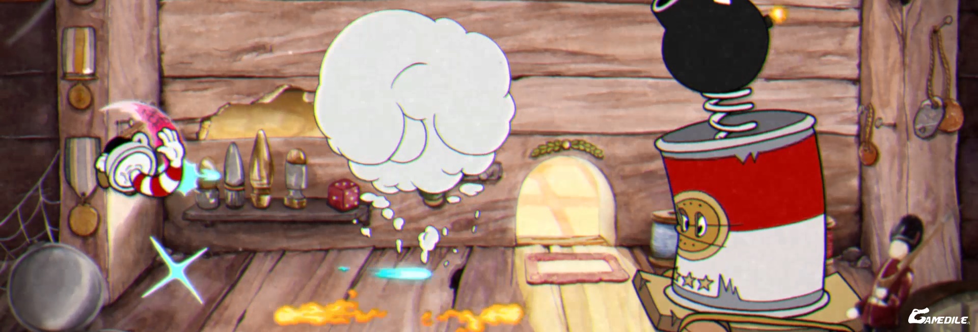 - Boss zmienia swoją twarz w armatę, z której posyła bomby - uważamy, gdyż przy ziemi eksplodują, ciskając pociski w dwie strony.