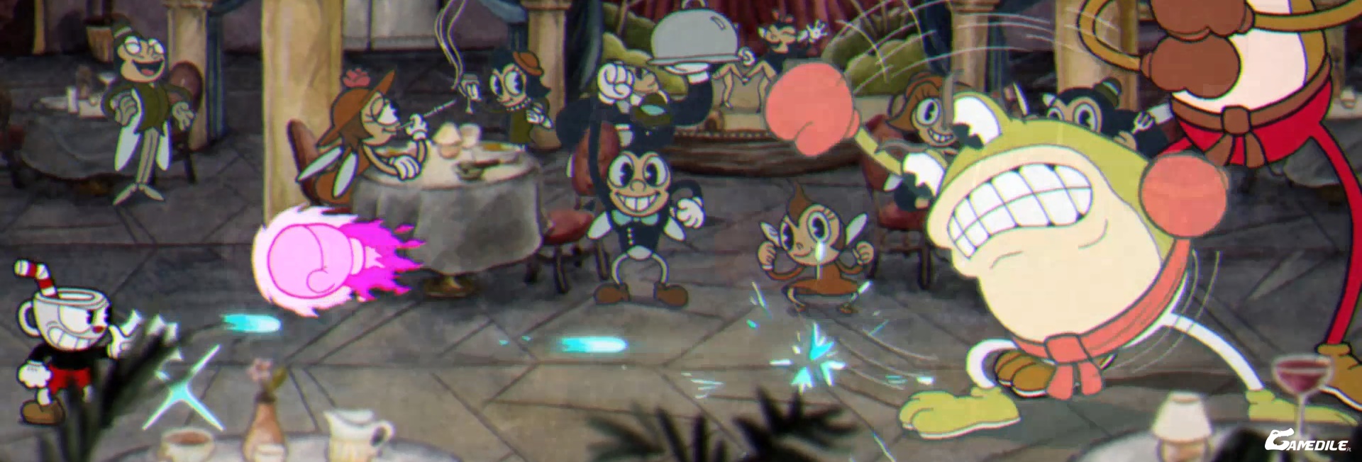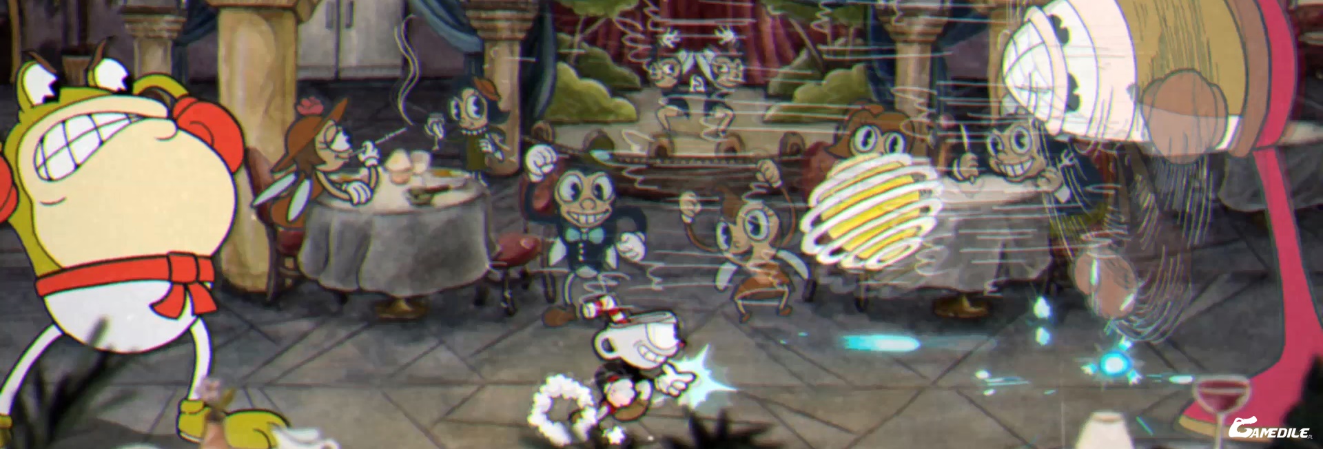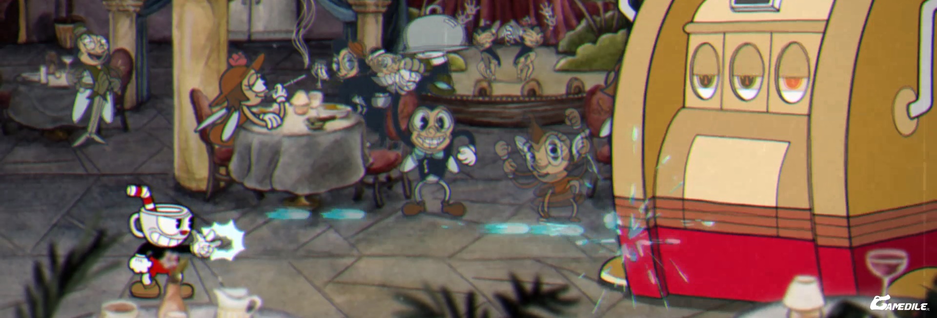 - Przeciwnicy przyjmą formę jednorękiego bandyty. Rzuca on monety, a po drugim rzucie możemy sparować jego rękę, tym samym rozpoczynając falę.