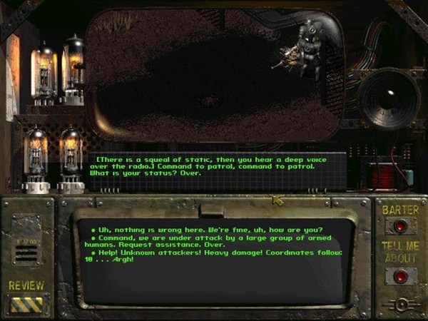 Mamy wsparcie trzech paladynów, na tym etapie gry z mutantami poradzilibyśmy sobie już sami, ale pomocą nie pogardzimy. Pokonujemy wszystkich mutantów i odbieramy im holodysk z kodem do drzwi oraz radio. Używamy drugiego przedmiotu aby wprowadzić pozostałe mutanty w błąd, za co inkasujemy dodatkowe doświadczenie.