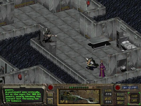 Jeśli mamy dobrze rozwiniętą umiejętność Nauka możemy się pobawić nieco komputerem znajdującym się w pobliżu windy. Wybijamy całą obstawę (lub nie) i zjeżdżamy na niższy poziom. Tam znów dokonujemy rzeźni. Wreszcie ruszamy jeszcze niżej. Wyłączamy pola energetyczne za pomocą panelu. Drugą winną dostajemy się na poziom 4. Idziemy w prawo i natrafiamy na porucznika, którego z chęcią wysyłamy do krainy wiecznych łowów.