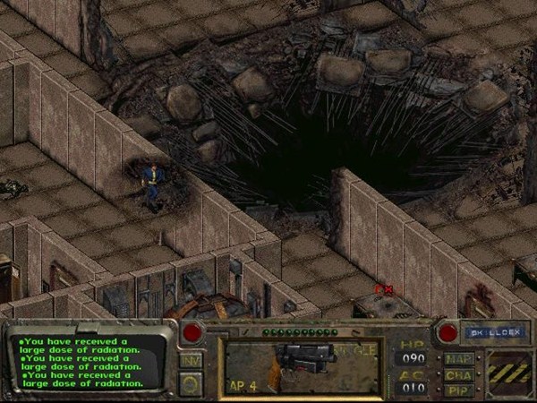 Od razu, gdy pojawiamy się na miejscu, zażywamy RadX. W Blasku panuje duży stopień promieniowania, więc staramy się wypełnić tę misję w miarę szybko, za pomocą licznika Geiger’a często sprawdzamy swój poziom napromieniowania. W razie kłopotów zażywamy RadAway. Używamy liny na jednym z wystających prętów i schodzimy w dół krateru. Przeszukujemy wszystkie ciała i szafki, mężczyzna w pancerzu wspomaganym ma przy sobie interesujący nas holodysk i żółtą kartę dostępu.