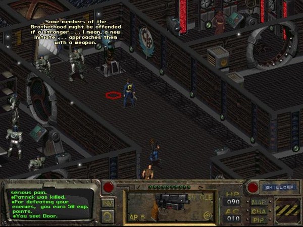 Pokazujemy holodysk strażnikowi i tym samym stajemy się oficjalnym członkiem Bractwa Stali, teraz pora nieco pozwiedzać. Windą zjeżdżamy na szósty poziom i rozmawiamy z generałem. Proponujemy mu, iż za darmo zrobimy zwiad na północy. Udajemy się na poziom piąty, Vree wypytujemy o holodyski, a zwiększą się nasze umiejętności komputerowe. Odwiedzamy zbrojmistrza, rozmawiamy z nim na temat pancerza wspomaganego, oferujemy, iż zdobędziemy brakującą część.