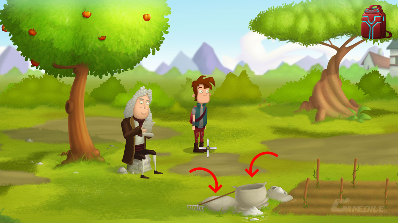 Gdy tylko wejdziemy, musimy szybko schować się za krzakami - jeżeli nie uda nam sięzrobić tego wystarczająco szybko, będziemy musieli powtórzyć cały proces jeszcze raz (od momentu włożenia listów do skrzynki). Dzwoni do nas Lise - okazuje się, że nasze obecne działania doprowadziły do tego, że Newton wydał najgorsze twory jeżeli chodzi o twórczość fanowską w historii. Działamy. Idziemy w lewo i otwieramy skrzynkę z narzędziami (toolbox), z której zabieramy szczypce (tongs). Otwieramy zacięty wiatrak (whirligig) w górnej części ekranu. Zabieramy z niego zardzewiałe koło zębate (rusty gear). Tego z kolei używamy na wiaderkach (buckets). W ten sposób pozbywamy się rdzy.