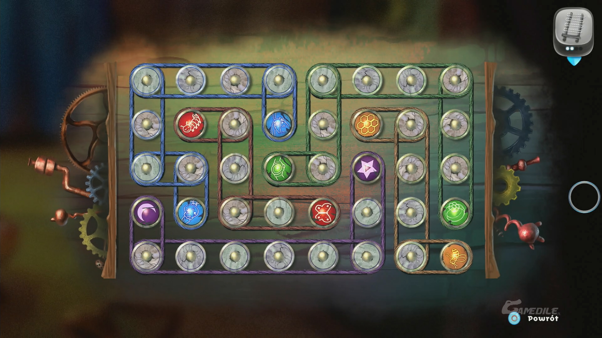 Posiadając już w naszym ekwipunku wszystkie z możliwych linek, przechodzimy do zagadki. Naszym zadaniem jest wytyczenie trasy wszystkim symbolom o tym samym kolorze w taki sposób, aby właśnie te trasy nie przecinały się nawzajem. Rozwiązanie zagadki znaleźć można na obrazku załączonym powyżej. Przechodzimy do nowo odblokowanej lokacji.