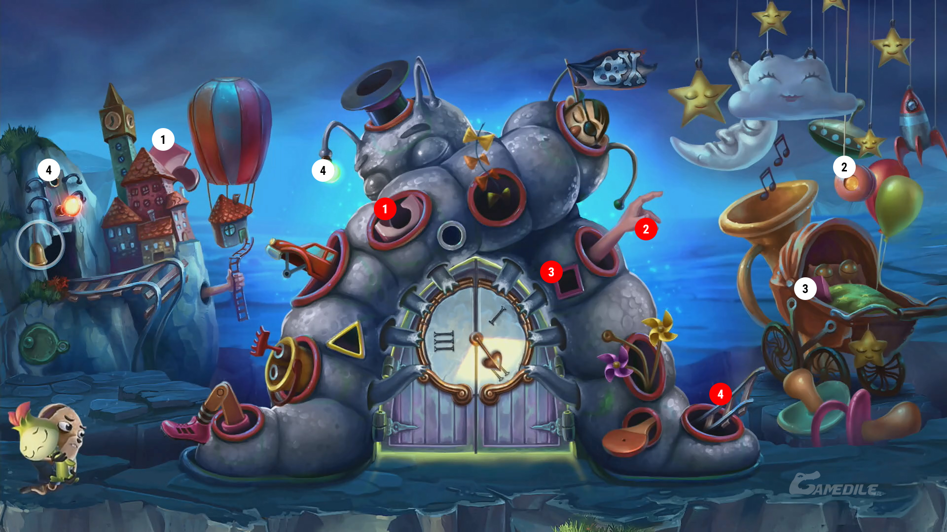 Element 4 - bierzemy marchewkę, wkładamy ją do kapelusza w lewym górnym rogu. Pojawi się królik, którego umieszczamy w miejscu przeznaczenia.