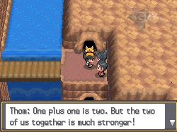 Wskakujemy do wody i płyniemy w lewo, by w końcu znaleźć mały kawałek drzewu. Stajemy na drugim polu od lewej i patrzymy w górę. Znajdujemy tu Pearl. Wracamy do Cliff Cave i udajemy się na szczyt. Tutaj wychodzimy - teraz czeka nas podwójna walka. Po niej idziemy jedyną dostępną drogą w lewo, a gdy pojawi się taka możliwość, po trawie w dół, by znaleźć Lagging Tail. Idziemy w górę i walczymy z kolejną parą, wkraczamy na Route 48.