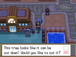 Od razu po dotarciu idziemy w lewo, wchodzimy do bramy i rozmawiamy z marynarzem, by nas wypuścił. Wychodzimy i idziemy jedyną dostepną drogą - zobaczymy Suicune w wodze! Po chwili pojawi się Eusine - rozentuzjowany, po chwili wyjdzie. Idąc w górę, a następnie w lewo w końcu trafiamy do właściwego miasta. Idziemy w dół od sklepu, w końcu docierając do wody. Płyniemy w dół na maleńką plażę i podnosimy Luck License. Wracamy do właściwego miasta, w razie potrzeby leczymy nasze Pokemony i szukamy Sali Gimnastycznej. Nie wchodzimy do niej, lecz do budynku powyżej. To Klub Fanów Pokemon. Rozmawiamy z jego przewodniczącym - to pan w kapeluszu za ladą po prawej stronie. Dostajemy od niego Rare Candy. Wychodzimy i teraz kierujemy swe kroki ku Sali Gimnastycznej (musimy ściąć drzewko po drodze).