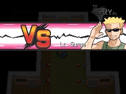 - Lider rozpocznie od Raichu - Pokemona o dość słabej obronie. Zazwyczaj używa on kilka razy Double Team, co sprawia, że trudno go trafić (w międzyczasie jednak możemy go załatwić, jeśli nam się uda). Lubi używać również Shock Wave, jak zresztą większość Pokemonów Surge'a.