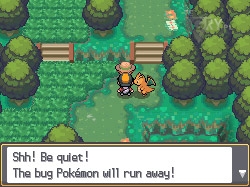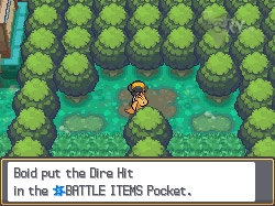Tutaj możemy złapać całkiem sporo Pokemonów, jednakże chyba tylko do kolekcji, gdyż ich poziom doświadczenia jest opłakany. Idziemy w dół przez trawy i walczymy z trenerem robaków (patrzącym się w prawo). Teraz idziemy po schodkach poniżej, na ostatnim polu przed drzewem znajdując Full Restore. Wracamy do początku platformy i idziemy w prawo i górę. Podnosimy Dire Hit. Kontynuujemy w prawo i w dół, a następnie ponownie w prawo. Wchodzimy na platformę i podnosimy Blue Flute. Następnie idziemy w prawo i w górę i walczymy z trenerem. Wracamy w prawo (w czerwonym kwiatku możemy znaleźć TinyMushroom) i na platformę, tym razem kierując się w dół. Wybieramy prawą uliczkę i walczymy z trenerem, zmierzamy dalej w dół, a w ostatnim czerwonym kwiatku po lewej stronie znajdziemy Big Mushroom.