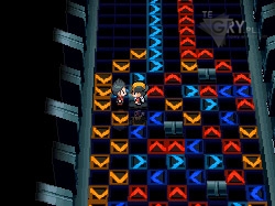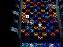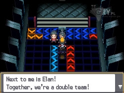 Teraz idziemy raz w górę i w prawo, znowu wchodząc w czerwony teleporter przy ścianie. Tym razem, gdy tylko się zatrzymamy, idziemy w lewo, trafiając na strzałkę w górę. Gdy się zatrzymamy idziemy znowu w górę. Po kolejnym stopie idziemy raz w prawo i korzystamy ze strzałki nad nami, zatrzymując się w kolejnym punkcie. Natychmiast korzystamy z czerwonej strzałki po prawej, a następnie z tej po lewej, znajdującej się przed długim tunelem. Toczymy podwójny pojedynek, po nim wybieramy strzałkę po prawej, by trafić do ostatniego już trenera. Teraz robimy krok w dół i w lewo, trafiając na początek Sali. Idziemy się uleczyć, gdyż na pewno nam się to przyda.