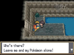 Od razu wskakujemy do wody i płyniemy w dół i w prawo, gdy pojawi się taka szansa tylko po to, by podnieść Elixir z ziemi. Następnie wracamy i płyniemy dalej na południe, tym razem na pierwszym skrzyżowaniu skręcamy w lewo i walczymy z trenerką na platformie. Nad nią mniej wiecej w lewym górnym rogu znajduje się ukryte Calcium. Teraz idziemy w dół (po zejściu z platformy). Nad głową kolejnej trenerki w spiczastej skale znajdujemy Ultra Ball. Walczymy z nią i teraz płynąc w prawo spotkamy kolejnego specjalnego Pokemona!