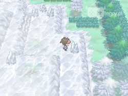 Na nich z kolei idziemy w prawo, następnie w dół, w prawo, w dół i w prawo, trafiając na następne schody. Trafiamy na ląd (wreszcie). Tutaj możemy złapać kilka bardzo ciekawych, lodowych Pokemonów. Zainteresujcie się specjalnie Vanillishem, który - jak dla mnie - jest bardzo ciekawym stworkiem. Gdy będziemy gotowi, kierujemy swe kroki w górę, jedyną dostępną ścieżką, aż w końcu natrafimy na schody. Wchodzimy na nie, a następnie zaglądamy do jaskini.