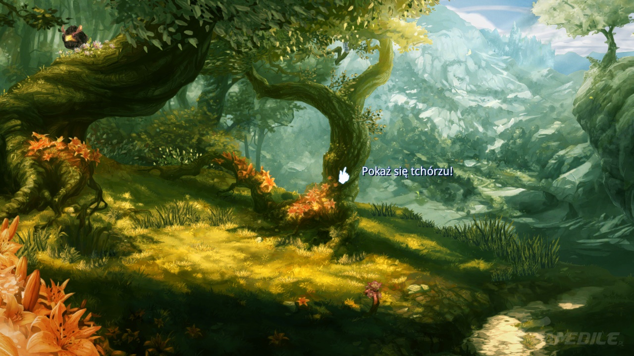 Gdy tylko pozyskamy kontrolę nad naszym bohaterem, rozglądamy się dookoła. Warto zauważyć, że używając Horusa możemy teraz przełączyć się na Renie, jeżeli tego chcemy. Zajmijmy się jednak obecnie odzyskaniem wiadomości. Najpierw próbujemy podsadzić Kyrę na drzewo - rozmawiamy z nią, a następnie używamy myszki. Niestety, ten plan nie wypali. Zagadujemy kobietę jeszcze raz - tym razem sugeruje kopniaka. Kopiemy więc drzewo, zgodnie z tym, co nakazuje nam Kyra. Robimy to aż do skutku - a w tym przypadku jest nim to, że podlatuje chmara Miodokleszczy i... porywa Kyrę.