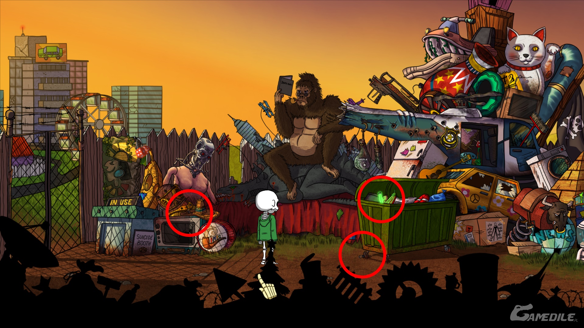 Trafiamy na wysypisko śmieci. Podnosimy dwie baterie (battery) - jedna z nich leży u nogi kosza na śmieci, druga na starym telewizorze. Podnosimy także pluton (plutonium) znajdujący się w koszu.