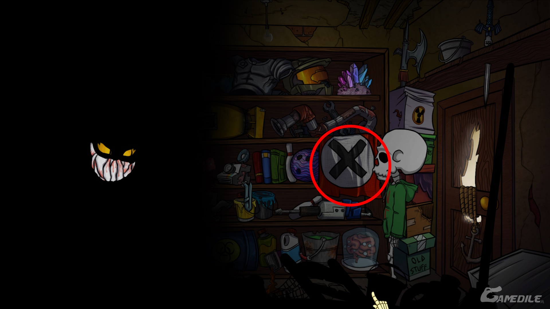 Na miejscu rozmawiamy z Boogeymanem, a potem przesuwamy flagę (flag) - za nią odnajdujemy szmacianą lalkę (rag doll), którą podnosimy. Opuszczamy o pomiezczenie i wracamy na korytarz. Tutaj korzystamy ze schodów, by dostać się na górę.