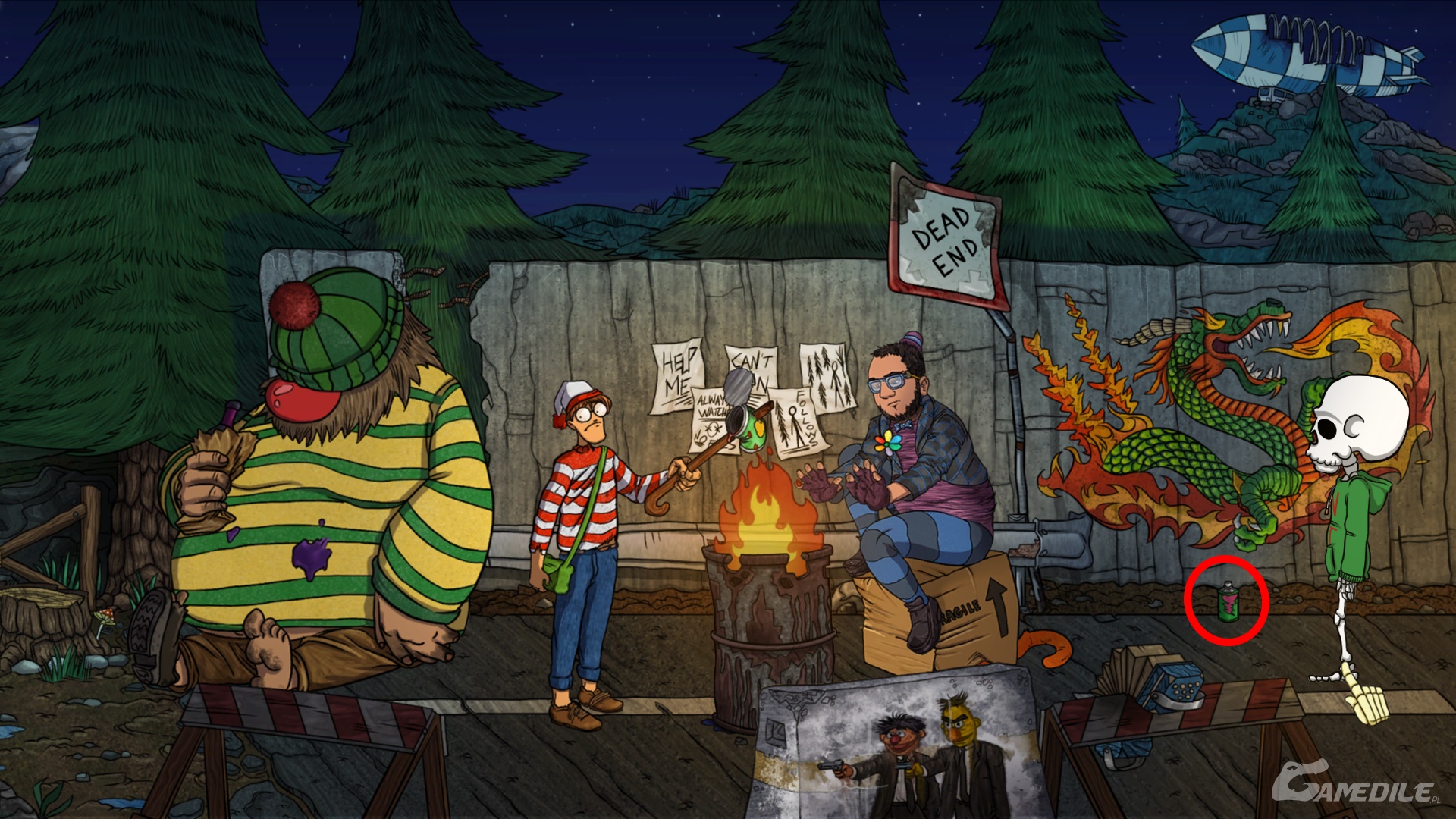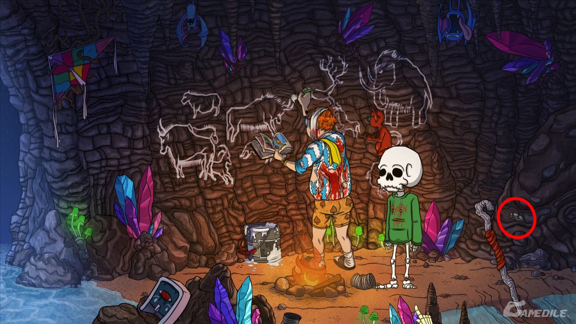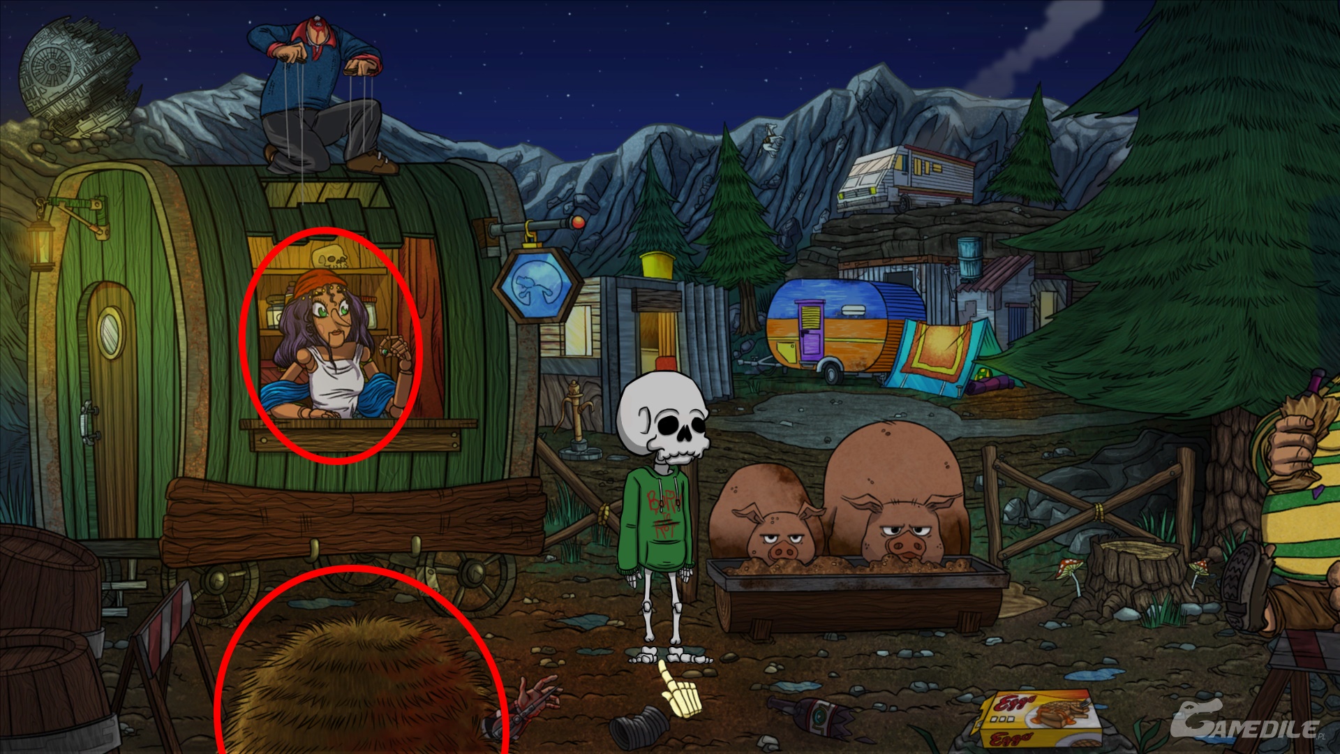 W błocie po prawej stronie znajduje się dysk (disc) - podnosimy go, a naszym oczom ukaże się... statek kosmiczny. Po raz kolejny rozmawiamy z diabłem - tym razem wybieramy nową opcję dialogową, a zarówno on, jak i malarz znikną z jaskini. My z kolei udajemy się na wysypisko.