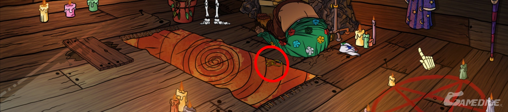 Przechodzimy w lewo i w stogu siana (heystack) odnajdujemy igłę (pin). Rozmawiamy z kobietą w budce, a następnie dajemy jej kupon. Poprosi nas o wybór absolutnie dowolnej nagrody.
