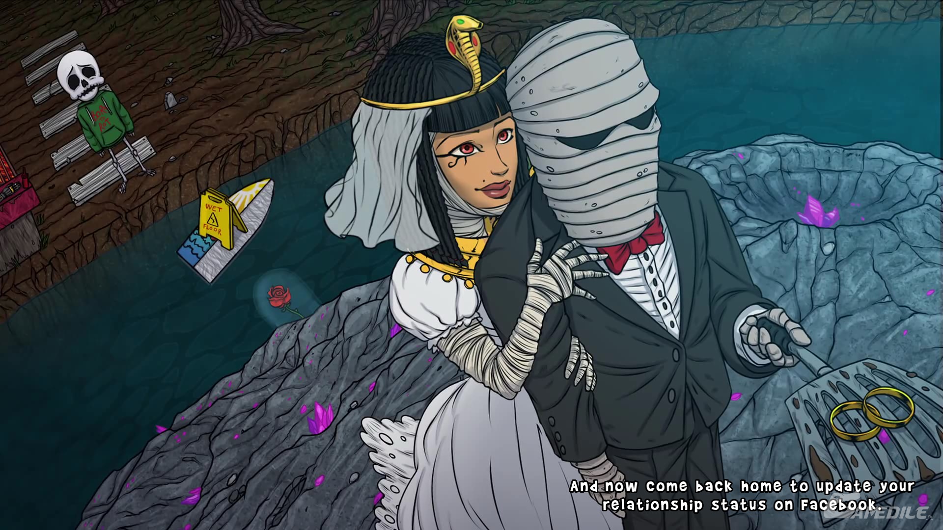 Wracamy do domu i przechodzimy do miejsca z barem. Dajemy Jesoosowi (:D :D) biblię i udajemy się na bagno, by być świadkami ślubu.
