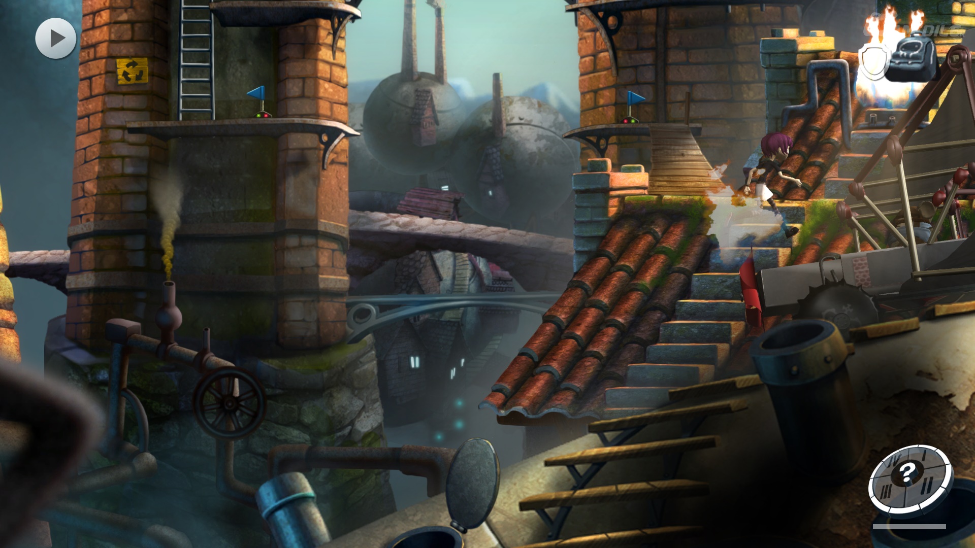 Zagadujemy do żaby - opowie nam ona u muchach. Podczas rozmowy możemy chwycić kulkę. Kolejna jest ukryta na kole roweru żaby, następna w drewnie pod nią, jeszcze jedna w wodzie, a ostatnia - na skarpie po lewej. Wracamy w lewo i wchodzimy w prawe górne wejście wieży. Trafiamy do dźwigni, za którą pociągamy. Wracamy, a następnie udajemy się w kolejne drzwi - tym razem te po lewej, na dole. Próbujemy wrócić tymi samymi drzwiami - trafimy jednak na most na górze.