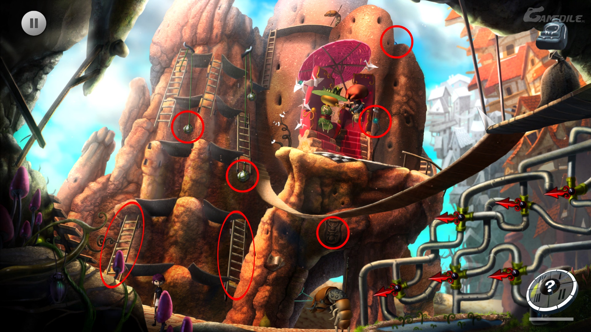 Tutaj musimy zejść na dół - by to zrobić, schodzimy po drabinie z lewej, a tę po prawej przesuwamy w dół. Po niej także schodzimy. Korzystamy z kolejnej drabiny, by trafić na parter - tam zmierzamy do strażnika. Za nim znajduje się wieszak - używamy go, by przebrać się. Następnie korzystamy ze znanej nam już dobrze drogi, by trafić przed królową i króla (teraz strażnik nawet nas nie zatrzyma). Rozmawiamy z nimi - od króla dostaniemy pozwolenie. Władca poprosi nas jednak również o naprawienie mechanizmu nawadniającego. Tym też się teraz zajmiemy. Schodzimy więc na sam dół, a tam pokazujemy pozwolenie strażnikowi.