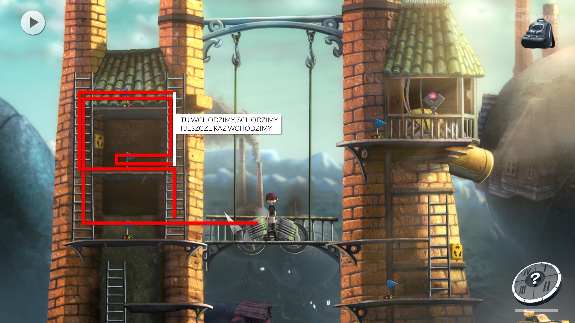 Po drugiej stronie rozmawiamy z mysim pilotem - będzie potrzebował sera. Z pomocą telekinezy podnosimy klucz, którego potem używamy na zamku - zabieramy ser. Zbieramy także kulkę obok drzwi, a także tę ukrytą w rurze niedaleko pilota. Kolejna znajduje się na metalowym łączeniu tuż nad pilotem. Dajemy mu ser, wskakujemy do samolotu i trafiamy do kolejnej lokacji.